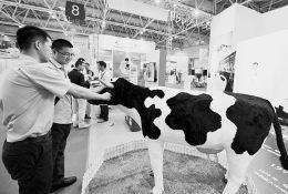 5月31日,观众在第六届中国奶业大会展馆现场参观。当日,第六届中国奶业大会暨中国奶业展览会在福州开幕,近千名乳业专家、多家中外乳品企业和乳品生产设备厂家齐聚福州。