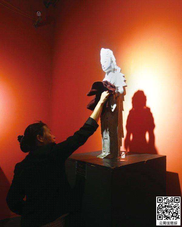 进入南北朝佛像雕塑馆,便会看见朱阿姨每隔一两分钟就会将所有佛像雕塑及展台擦上一遍,尽管看起来一尘不染。“没事就擦一擦,干净点看起来总是舒服点,也庄严一点。”朱阿姨笑着说。