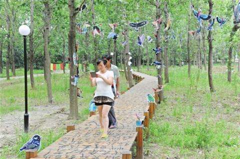 苏报讯(记者大沐)昨天,一场“回归—苏州乡村艺术邀请展”在苏州临湖镇灵湖村的树林里开幕,苏州10位艺术家以自然环境为创作载体,把人们记忆之中的纸飞机、屋前屋后的破瓷片、世界各地的鸟类等艺术表现融入乡村之中,为大众呈现一场精彩的当代艺术展。