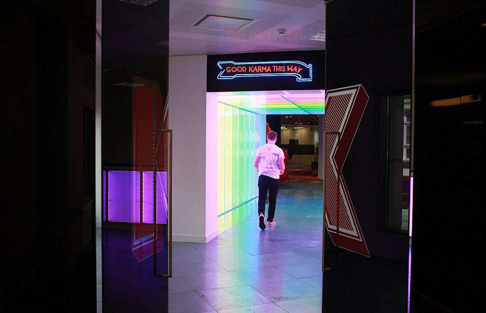英国创意机构Karmarama想方设法为员工提供良好的工作空间,包括乒乓球馆、食堂、舞厅隧道、游戏机、传统糖果店等。
