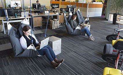 Whole Foods Market位于奥斯汀的办公人员被鼓励随意走动,可在任何自己喜欢的地方工作,比如悬于棚顶的吊椅。