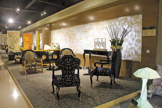 这家家具公司更支持学生在公司找出所有可能采用的一些材料,包含余料和边角料,实行材料利用的最大化,减少浪费。在展厅里可以看到用木屑做的云雾灯、用泡沫材料做的蝴蝶屏障,用废旧皮革做的装饰墙等等。这些设计作品跟社会上经常看到的完全不一样,是用重金去镶金镶银所不能实现的。