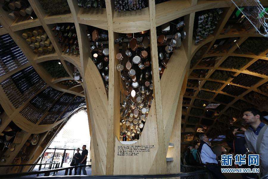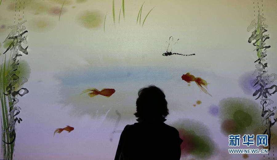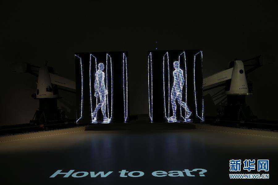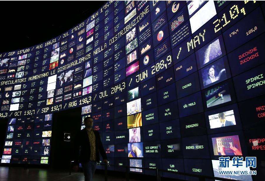 米兰世博会日本馆内,一名游客观看讲述生命哲学的短片