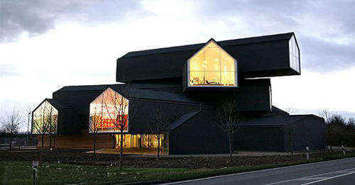 vitrahaus坐落在知名家具品牌Vitra在德国Weil am Rhein的园区里。vitrahaus为Vitra公司的家具展厅,五层的建筑由斜屋顶房子堆积而成,屋顶由粉饰灰泥涂料做成charcoal stucco。每座尖顶小房子的尽头都是玻璃墙,悬挑出来多达5米,制造了这一房子叠罗汉的壮观景象。