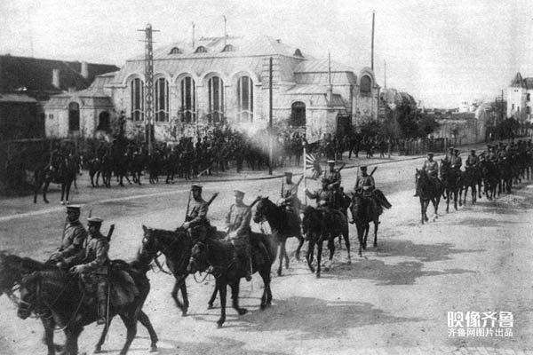 1914年日军在青岛市区内举行阅兵式。