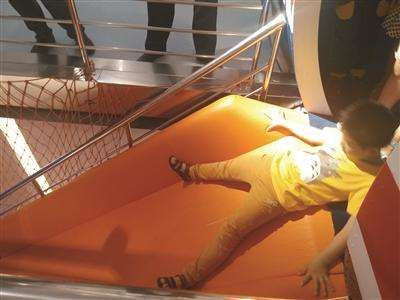 飞机紧急迫降,孩子们体验从应急滑梯逃生。