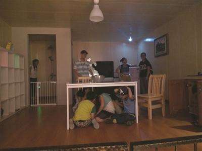 模拟暴风雨中的“真实”体验着实吓倒了不少小学生们。记者看到,在一个动感影院内,孩子们站在液压震动平台上,眼前的360度环绕大屏幕全方位地播放着雪崩、海啸等各种灾难来临时的场景,大家紧紧握住手中的栏杆,“真的像感觉到站在海面上,在风雨中摇晃一样,好可怕,”一位二年级女生略显惊慌地说。