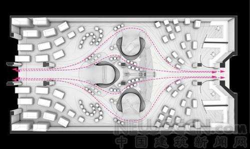 该设计探讨了数学对日常生活中的影响,将抽象的数学概念转化成令人兴奋的互动体验,对象适于不同年龄层的游客。数学长廊中最大的展品是悬挂在天花板上的1929年生产的双翼飞机。以此主题为延伸,扎哈哈迪德构思整个空间为一个风洞,三维曲面代表了飞机的空气动力漩涡。