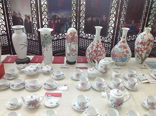 一道楼中楼梯使近代展厅与历史展厅相接,先是介绍了醴陵瓷业从日本引进先进技术再创辉煌的故事。精美的釉下五彩,在适度的灯光照明下,散发着独特的魅力。展品展厅的隔壁,是荣誉展厅。一张张照片反映了醴陵瓷参加巴拿马万国博览会并获得金质奖章的盛况。近代展厅的最后,醴陵瓷业受到战乱影响,发展虽有所停滞,但也为现代展厅做了铺垫。