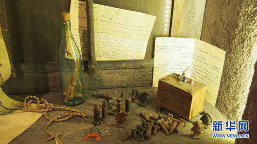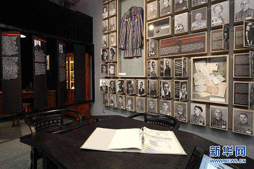 这是2015年4月6日在波兰克拉科夫城市历史博物馆二战展厅拍摄的纳粹集中营牢房。位于波兰南部的克拉科夫是一座闻名遐迩的历史文化名城,第二次世界大战期间被德国法西斯占领。与华沙等几乎完全毁于战火的波兰城市相比,克拉科夫还算“幸运”,因为它的多数古老建筑得以平安保存下来,但当地的居民同样受到了纳粹的残酷奴役、压迫甚至杀害,数以万计的犹太人和抵抗人士被关进集中营,其中只有很少一部分人活到了战后。臭名昭著的奥斯威辛集中营就位于克拉科夫附近。克拉科夫城市历史博物馆是克拉科夫城市博物馆的一部分,分布在该市的各个区域,每个区域都有一个展示厅,分别展出不同的历史文物,其中二战展厅专门展示克拉科夫在被德国纳粹占领期间的情况。二战展厅的展品主要有照片、文件以及实物等,大多是战后从各个集中营中收集到的,其中包括集中营被关押者们书写的约800封信件。这一件件展品静静地摆放在那里,无声地控诉着法西斯的暴行。