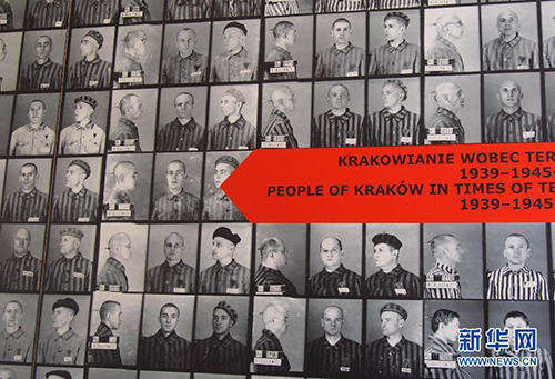 这是2015年4月6日拍摄的波兰克拉科夫城市历史博物馆二战展厅展出的集中营被关押者的照片。其中戴眼镜的女孩子安娜由于参加了波兰救国军,于1943年11月8日在家里被捕,受尽折磨,最后幸运地活到战后。位于波兰南部的克拉科夫是一座闻名遐迩的历史文化名城,第二次世界大战期间被德国法西斯占领。与华沙等几乎完全毁于战火的波兰城市相比,克拉科夫还算“幸运”,因为它的多数古老建筑得以平安保存下来,但当地的居民同样受到了纳粹的残酷奴役、压迫甚至杀害,数以万计的犹太人和抵抗人士被关进集中营,其中只有很少一部分人活到了战后。臭名昭著的奥斯威辛集中营就位于克拉科夫附近。克拉科夫城市历史博物馆是克拉科夫城市博物馆的一部分,分布在该市的各个区域,每个区域都有一个展示厅,分别展出不同的历史文物,其中二战展厅专门展示克拉科夫在被德国纳粹占领期间的情况。二战展厅的展品主要有照片、文件以及实物等,大多是战后从各个集中营中收集到的,其中包括集中营被关押者们书写的约800封信件。这一件件展品静静地摆放在那里,无声地控诉着法西斯的暴行。