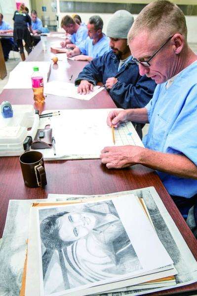 给囚犯们上的第一课是自画像,老师只要求学生画出肩膀和头。动笔前,每名囚犯要先想出50个词汇来描述自己,然后根据这些关键词绘制自己的形象。
