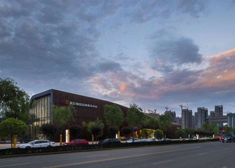 项目包括一个展厅、一间多功能室、行政办公室和一个独立的展览侧楼。雕塑式的建筑形态来源于当地波状起伏的地形,反映了西安二元性和动态美。体验中心妥善协调了一系列活动空间,为特色项目单元提供了丰富的感官体验。