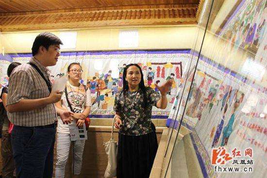 红网凤凰站8月18日讯(分站记者 施雨润苗)越来越多的苗族文化爱好者、专家学者和媒体记者慕名来到湘西凤凰县寻找一位土家族女人,而让这个51岁的土家族女人备受关注的正是一幅苗绣作品——苗族《古歌》史诗绣卷。10年的策划搜集,2年的绘画描图,48位绣娘以8种不同的绣法,耗费160斤丝线,用了248832000针,花费2年的时间完成了一幅长148米,宽1.12米的巨幅苗绣长卷。在“武陵山区(湘西)土家族苗族文化生态保护节”、“第四届湖南艺术节”等各大会展上,这幅巨大苗绣一经亮相便成为全场的焦点。让人们为之震撼的不仅是作品本身工程之浩大和绣工之精湛,更值得一提的是这幅苗绣作品所包含的深刻文化内涵。可以说,它让沉静了几千年的苗族史诗开口说了话,而那个让苗族史诗开口说话的正是凤凰古城里51岁的土家族女人向秀平。