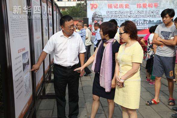 8月28日上午9时,成都市温江区纪念抗战胜利暨世界反法西斯胜利70周年主题展在文庙广场举行开展仪式。此次主题展活动以“铭记历史 珍爱和平”为主题,旨在弘扬伟大的抗战精神,让广大人民群众铭记历史,珍爱和平。温江区委常委、宣传部部长万雪梅、区人民政府副区长何敏出席活动。