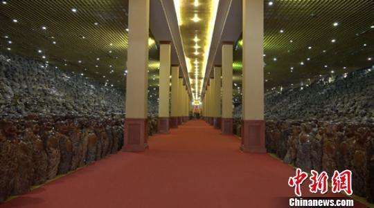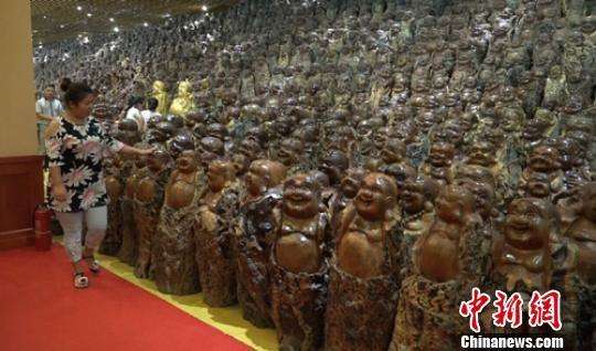 “太震撼了,刚一进来有点蒙,从来没见过这种佛像阵容,排列得密密麻麻,看久了,觉得眼晕。”带着孩子参观的市民冯佳惠说,孩子更是惊奇,摸摸这尊佛像的大肚子,摸摸那尊佛像的胖脸蛋,开心得很。
