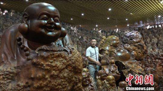 中新网郑州9月7日电(记者 门杰丹)或立或坐,或笑容可掬或端庄肃穆……近日,河南枣乡新郑市惊现根雕佛像群,用枯死的枣树雕刻而成的9200余尊佛像气势恢宏,姿态万千,吸引众多市民慕名观赏。