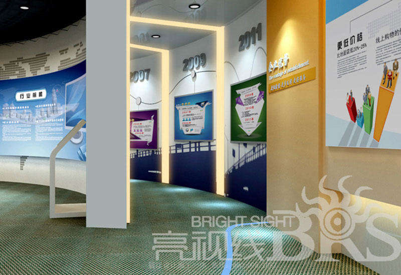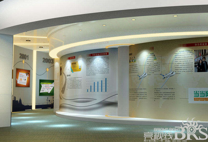 亮视线打造的当当网企业展厅整体外观以时间表盘,像征科技,飞速,发展.整体色调追从企业色.以白色为基调加以橙色以及科技蓝.螺旋流线赋予科技感以当当为中心网聚全球.局布设计以点到面形式多样,以各区域要求为中心展开设计.以多元化为核心展现要素.以人性化的展示手段,部分局部运用多点触摸等多种多媒体手段更直观来展现当当网的十二年风雨历程及赢在未来的实力.