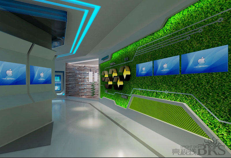 亮视线打造的“赛晶电子电力企业展厅”将成为赛晶集团展示其企业实力与远景规划的窗口;展现企业主营业务与产品的中心平台;体现赛晶集团十年的辉煌发展历程和积淀下来的梦想及文化。最终提升其品牌价值。设计团队以完美的现代设计手法在神奇地实现了一个三维空间内的能量转化,并将其在整个空间内流畅传递,激活看空间内的每一角落。随着受众触碰触摸台的同时,led光纤传递整个空间,同时延展向产品区。给人强烈的视觉震撼,赛晶之光的主题深入人心。