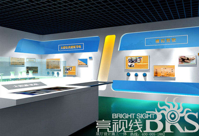 亮视线打造的电力科普企业展厅从空间处理上,我们采用开放式互动参观平台模式。采取主次流线交替的参观方式,体现“以人为本”的原则。充分体现人性化的设计。从内容设计上,我们以白、蓝色调为基调,与亲切的橙色配合共同保证展馆风格的统一。并且在保证整体性的基础上,突出每一部分的特点,注重与展示手段的结合,体现现代而又独具文化,使得整个参观详略得当,有起有伏。从材质应用上,我们采用环保节能材料建造,降低空调和照明负荷,打造绿色生态的展示空间。