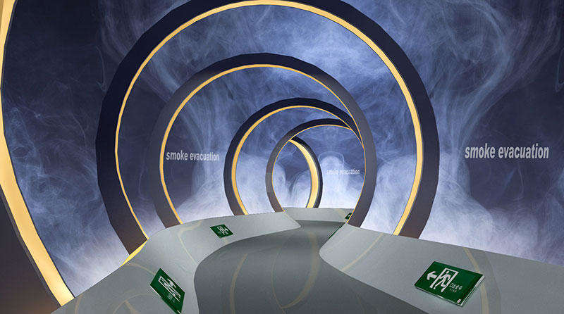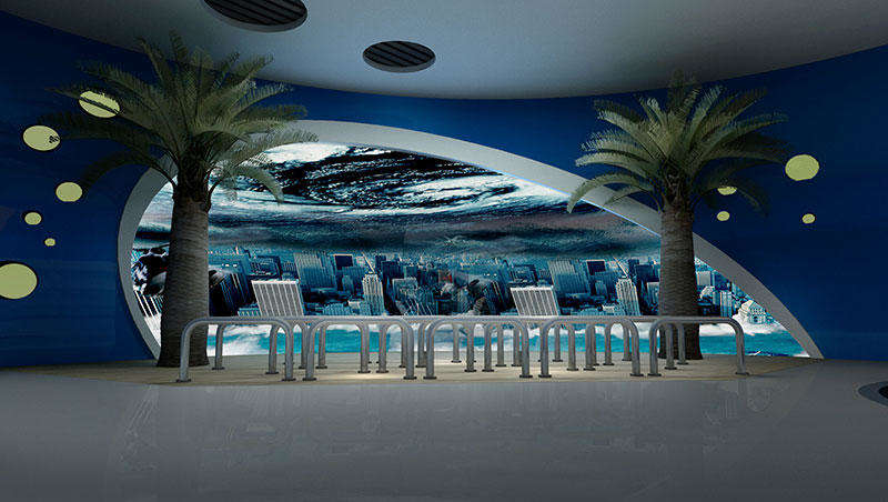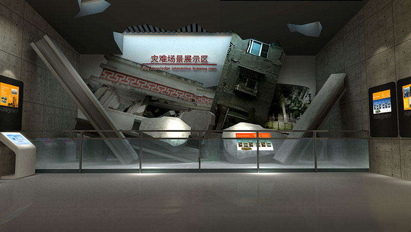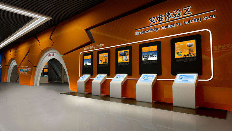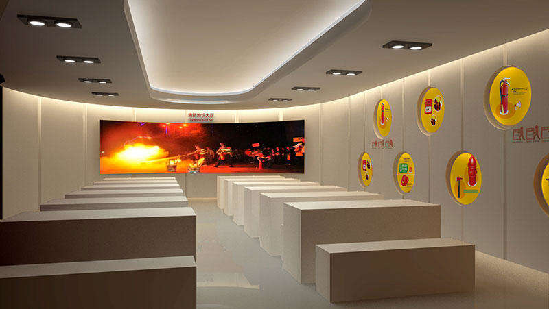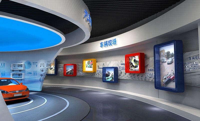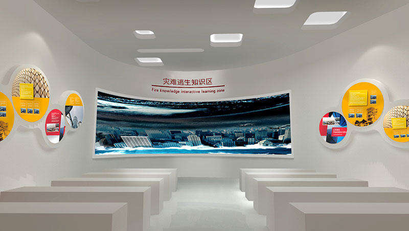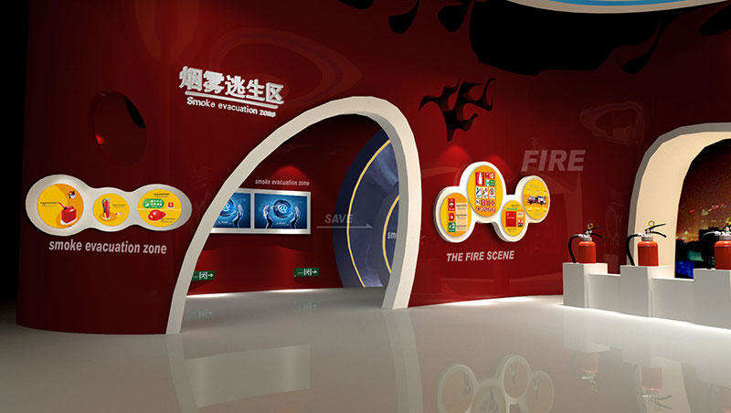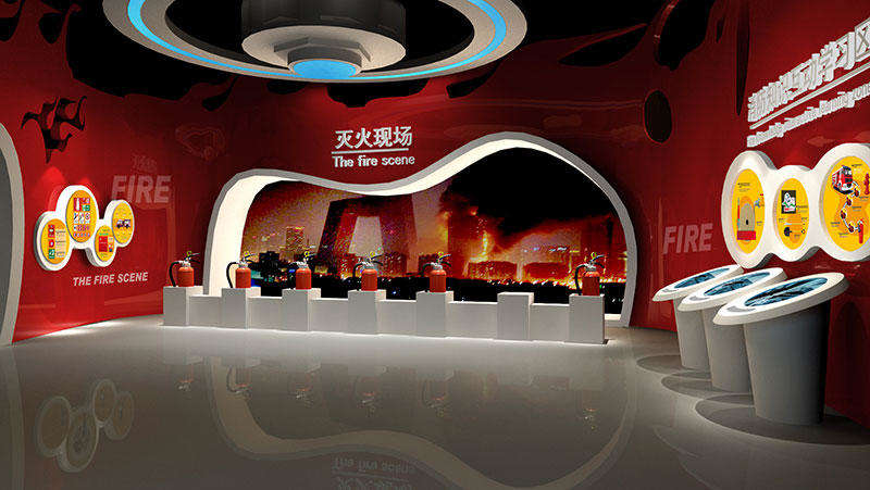 山东东营安防展厅分为消防安全体验区、灾难体验区、社会生活体验区、交通安全体验区四个区块。我们运用模拟真实场景打造每个展区环境,板块空间布局合理,造型采用连贯的弧形,使人视觉,流畅的同时,增强感观冲击性,巧妙结合多媒体设备,丰富整个展区的内容。