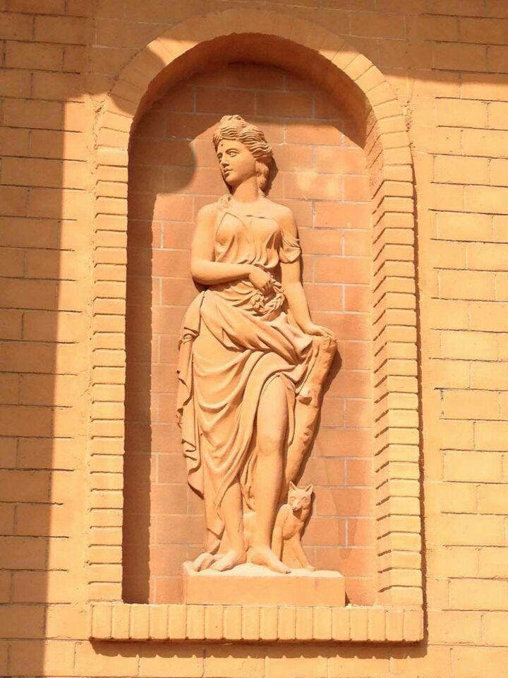 雕塑,指为美化城市或用于纪念意义而雕刻塑造、具有一定寓意、象征或象形的观赏物和纪念物。雕塑是造型艺术的一种。又称雕刻,是雕、刻、塑三种创制方法的总称。指用各种可塑材料(如石膏、树脂、粘土等)或可雕、可刻的硬质材料(如木材、石头、金属、玉块、玛瑙、铝、玻璃钢、砂岩、铜等),创造出具有一定空间的可视、可触的艺术形象,借以反映社会生活、表达艺术家的审美感受、审美情感、审美理想的艺术。通过雕、刻减少可雕性物质材料,塑则通过堆增可塑物质性材料来达到艺术创造的目的。