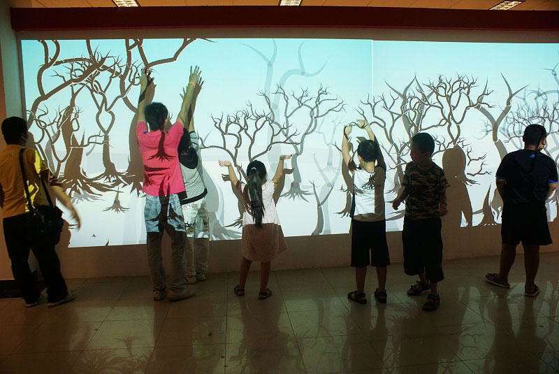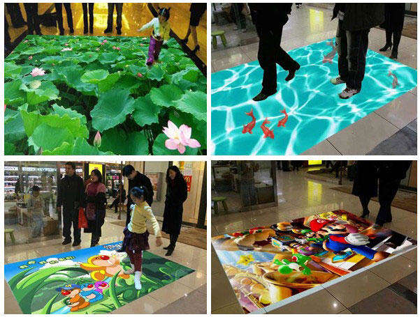 互动投影系统为融合当今世界最高科技的广告和娱乐互动系统;互动影音系统提供一种不同寻常并激动人心的广告与娱乐交相辉映的效果系统,适用于所有公共室内场所,特别是休闲、购物、娱乐及教育场所。2013年虚拟互动技术已完成人机交互部分,并有多种与自然或虚拟世界的仿真模拟。互动投影的反应延时在0.05秒内,可与国外同类产品媲美,在国内属于领先地位.互动投影系统根据环境极其行业特性的需要主要有以下几种类别:有地面互动投影、桌面互动投影系统、壁面互动投影系统、互动背面投影系统、橱窗互动投影系统、立面互动投影系统、台面互动投影投影系统、空中翻书投影系统、空中遥指投影系统。
