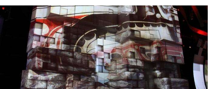 用动态投影,对整个展览展示的氛围、格调都是一种升华。因此,异形投影诞生了。通过异形播片系统,我们可以为客户勾取投影对象——异形物体的轮廓,并根据 其轮廓设身打造专用的动态影片,最终通过多通道边缘融合软件,使投影完美贴合到异形表面上,仿佛是异形物本身焕发的光彩。异形投影的投影面不受限制,汽车 外形,雕塑外形,异型墙体等,都可以轻松拿下。异形投影,是针对异形投影表面而设计的投影展示方案。在展览展示业、设计业日益发达的背景下,许多场合的装修设计以变化多端的形状凸显特点,出奇制胜。如果在这些异形表面上使用动态投影,对整个展览展示的氛围、格调都是一种升华。