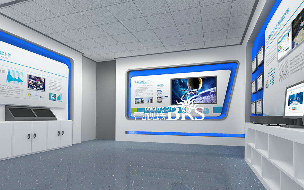 蓝白色调的展厅,是经典,也是轩宇空间的企业LOGO颜色,作为一家高新技术研究与开发的大型企业,展厅的内部设计自然也更加高端与新颖。