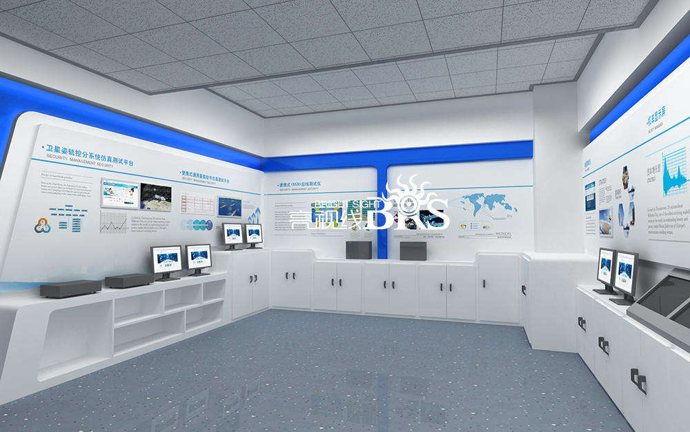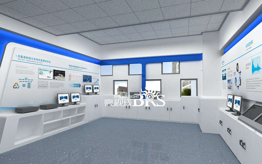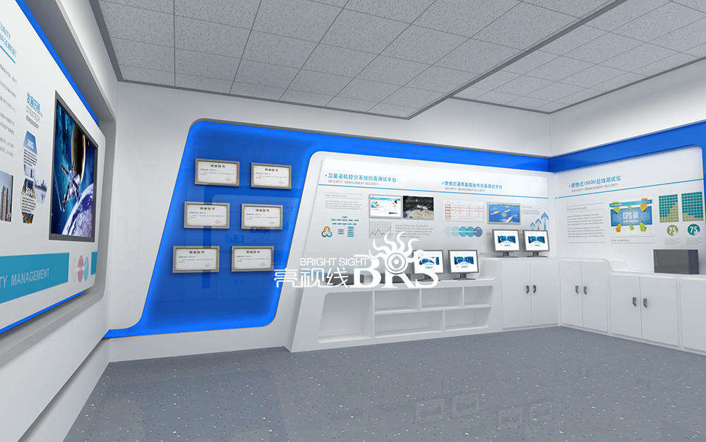 展陈设计为了契合其航空高新领域的企业发展方向,将展板展示环形萦绕,突出一种航天技术的空间感,展厅内没有通过多媒体屏幕进行单一的循环展示,而是将计算机置入其中,让参观者可以自主互动的了解企业发展脚步与企业建设文化,